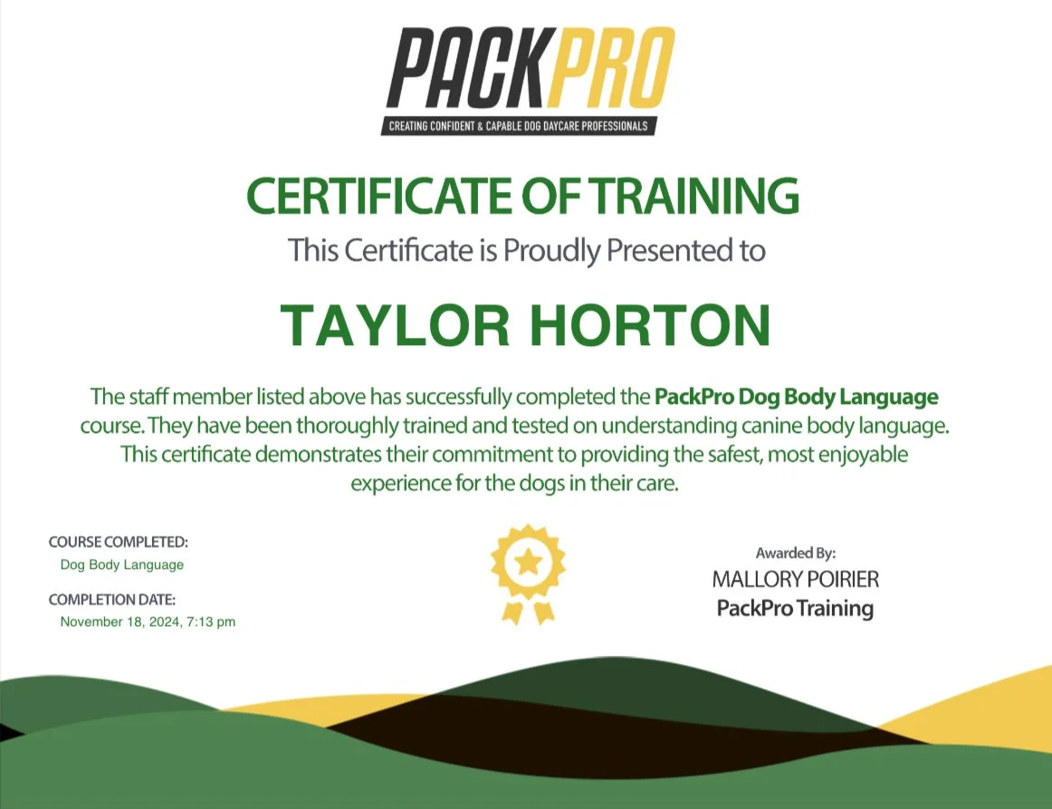 My specialized certifications include playgroup management, new dog evaluations, and customer service excellence. Additionally, my background in behavior analysis and temperament assessment allows me to provide tailored care that respects each dog's individual personality and needs. Whether your pet is energetic and social or calm and reserved, l adapt my approach to ensure they feel comfortable and loved.